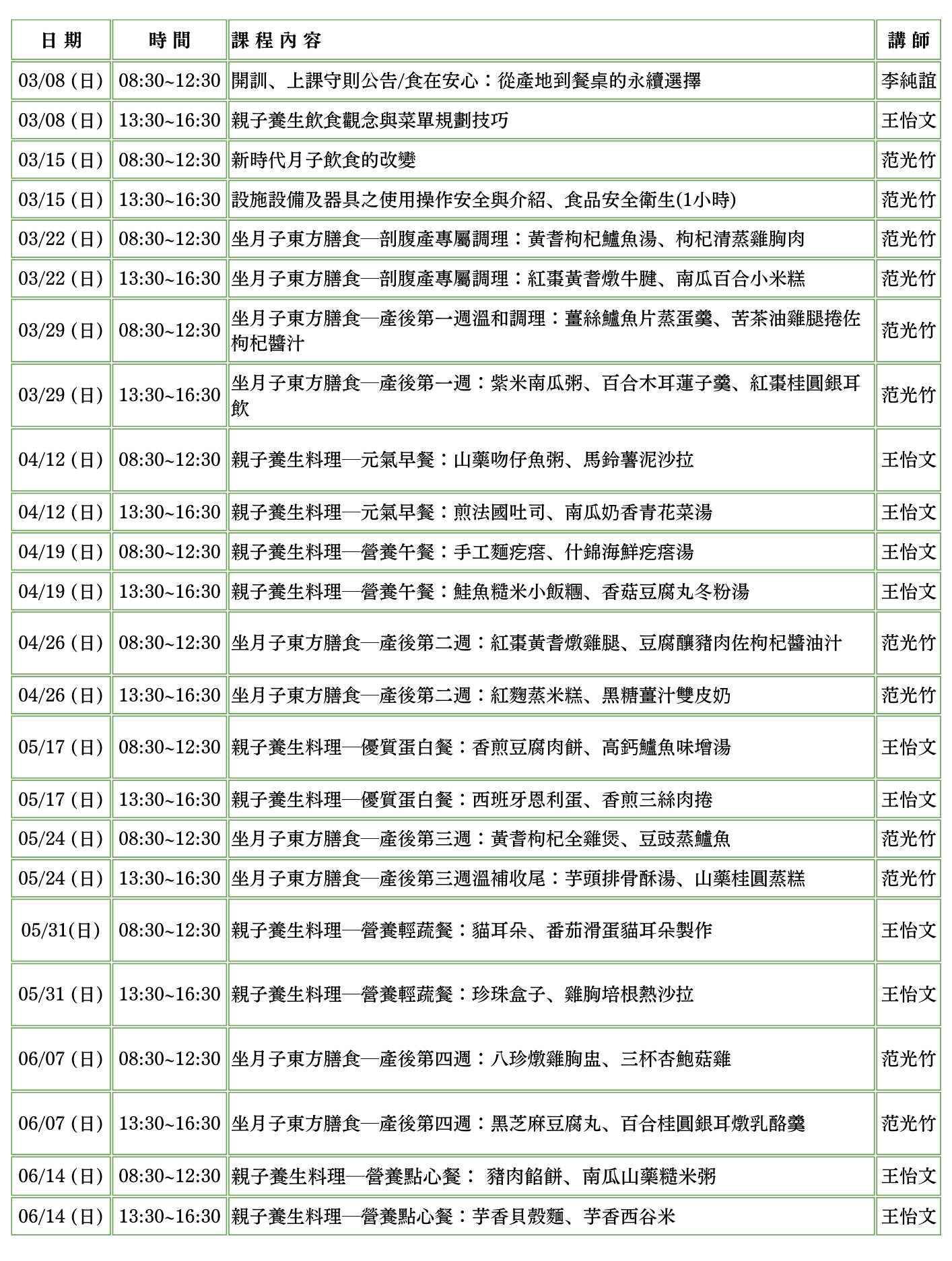 親子養生與坐月子料理班