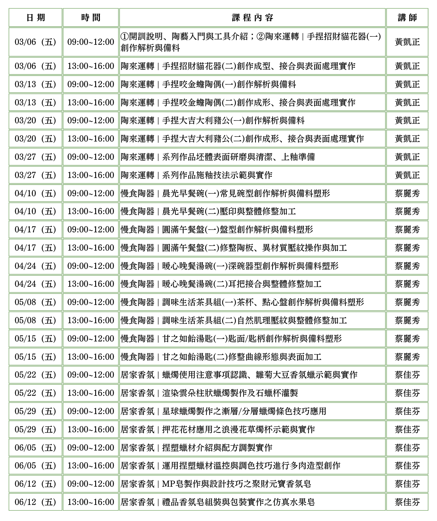 ▸ 上課日期:3/6至6/12 每週五